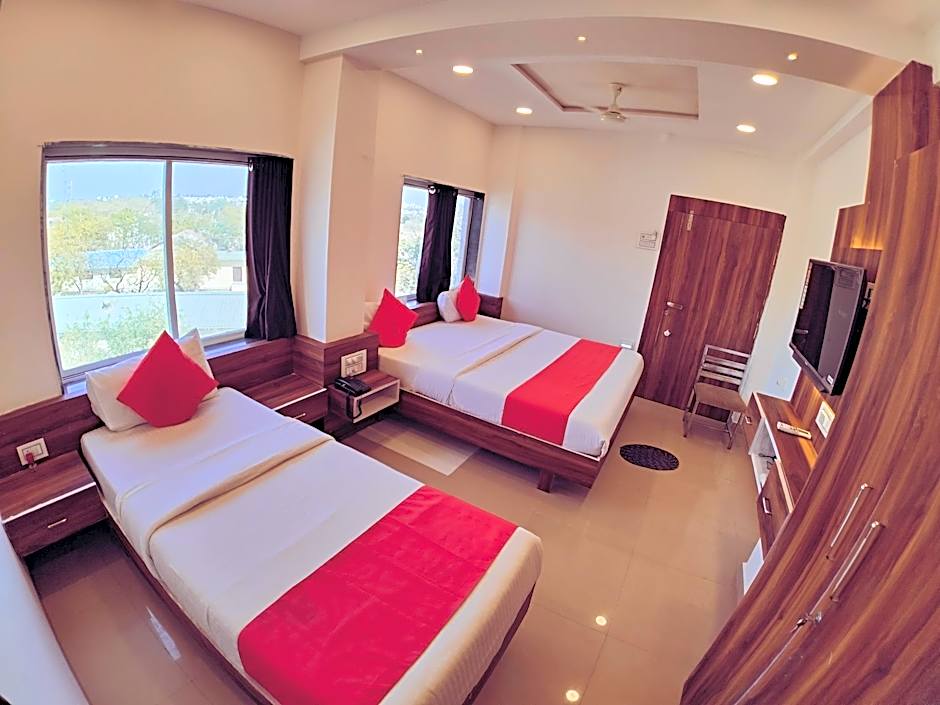 Indulge in a spacious Deluxe Double Room featuring twin beds, a balcony with a breathtaking view, a terrace, a flat-screen TV, and air conditioning - perfect for accommodating up to three adults. Enjoy the convenience of an electric kettle for a warm cuppa. (237 symbols)